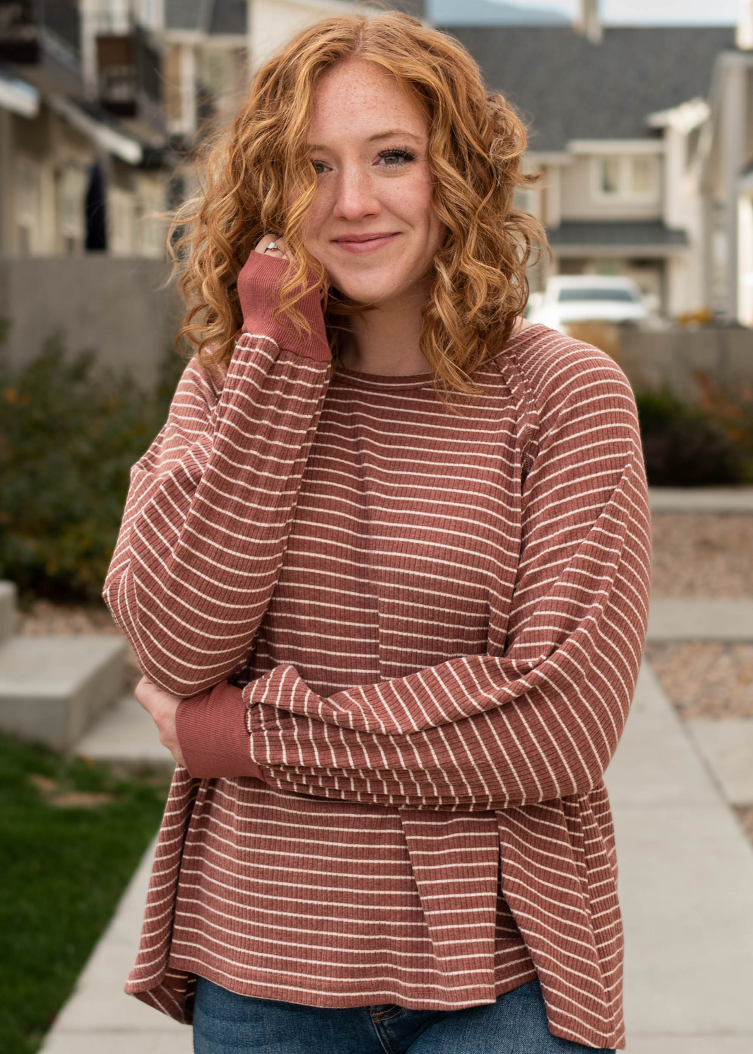 Allison Dusty Rose Ribbed Long Sleeve Shirt