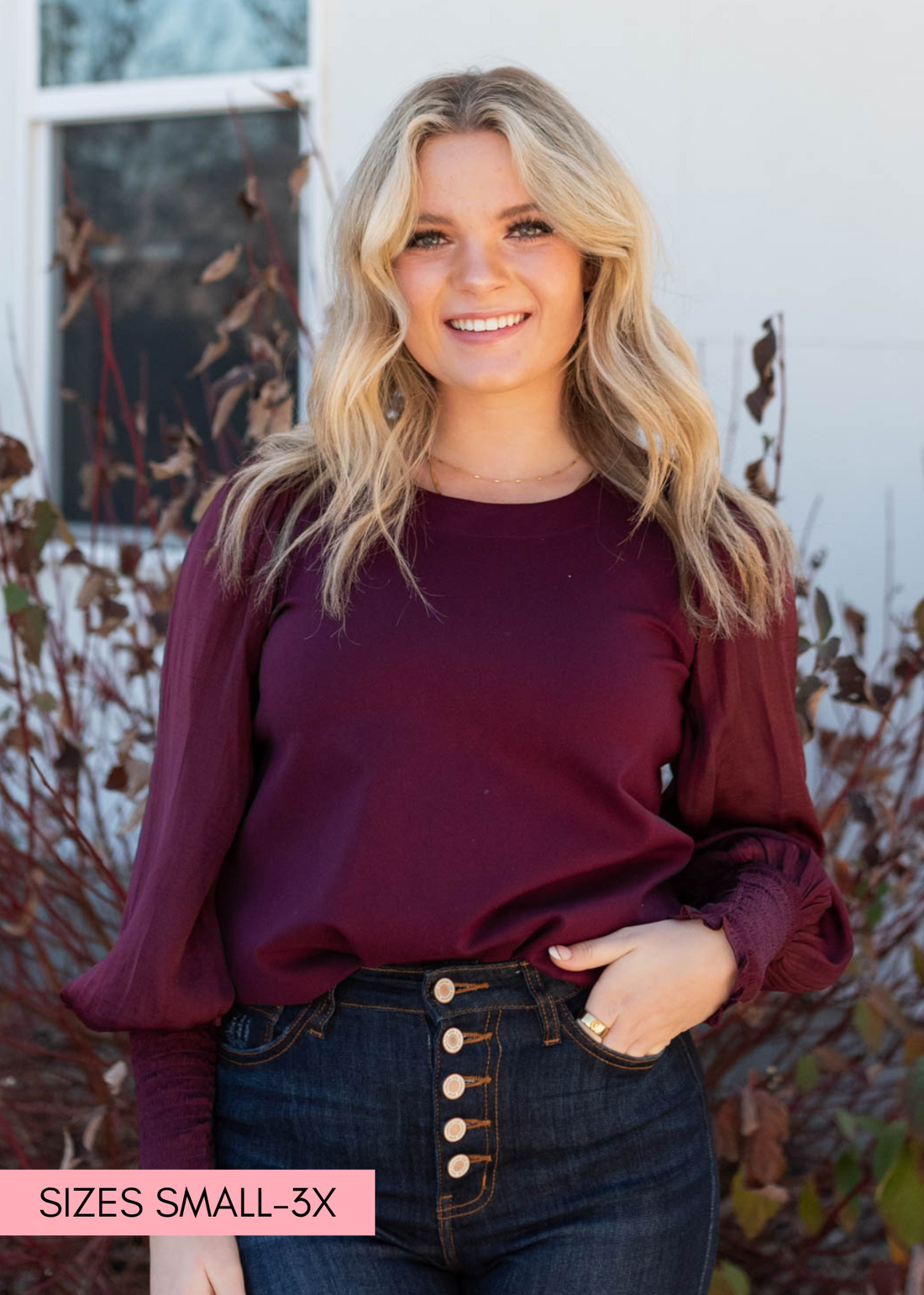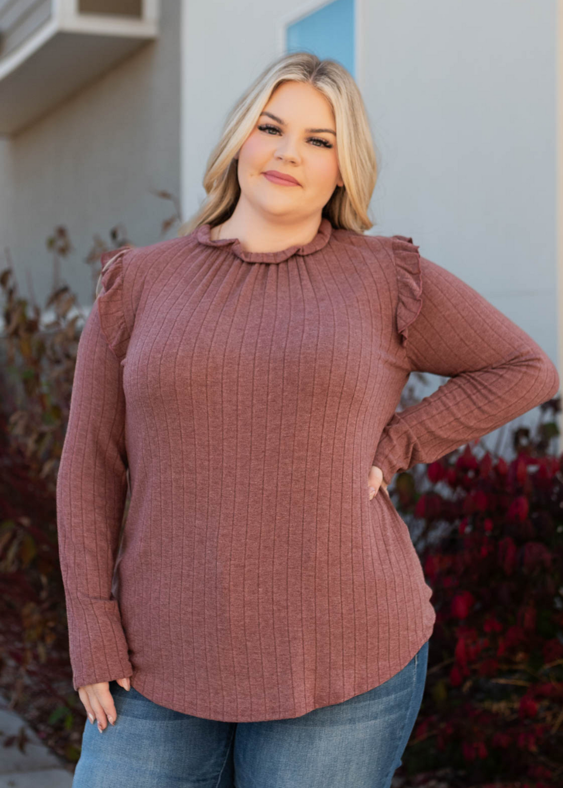 Jacelyn Burgundy Ruffle Long Sleeve Top
