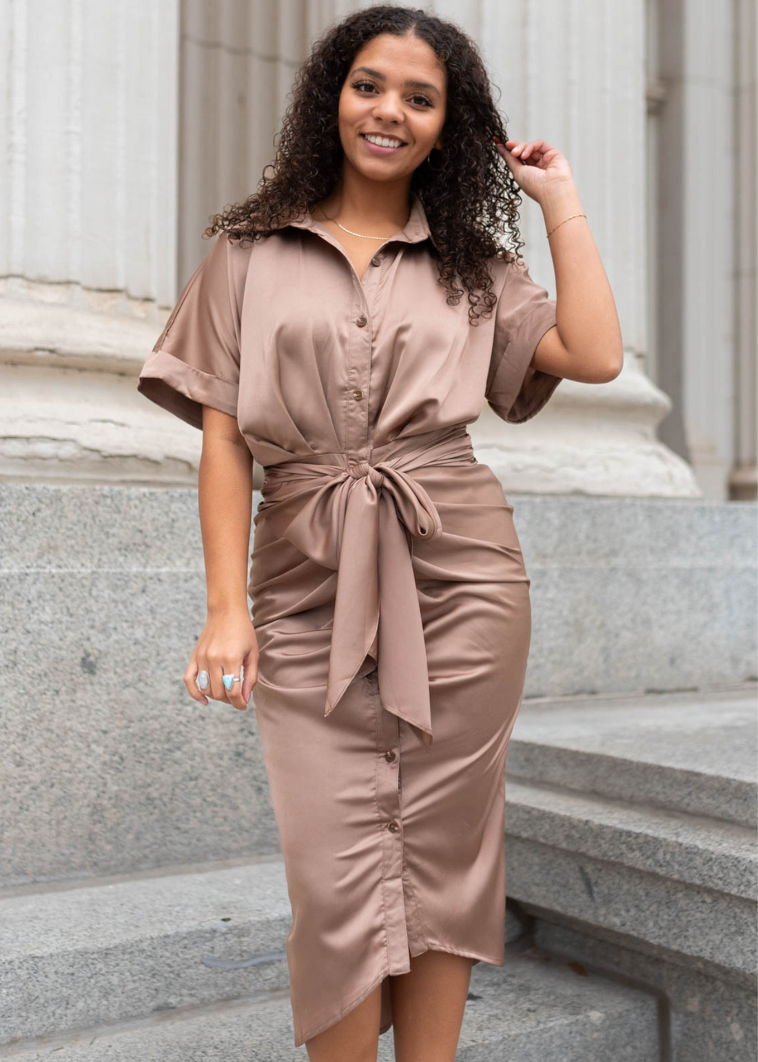Vivianne Mocha Satin Dress