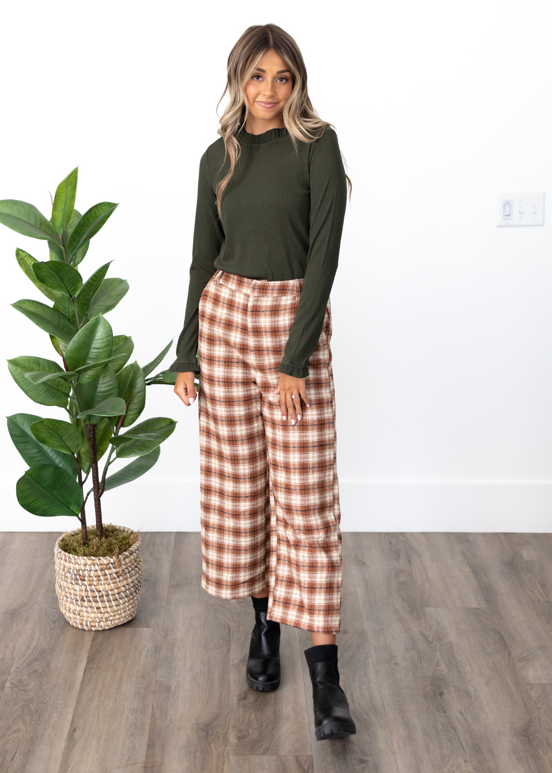 Lyra Brown Plaid Pants