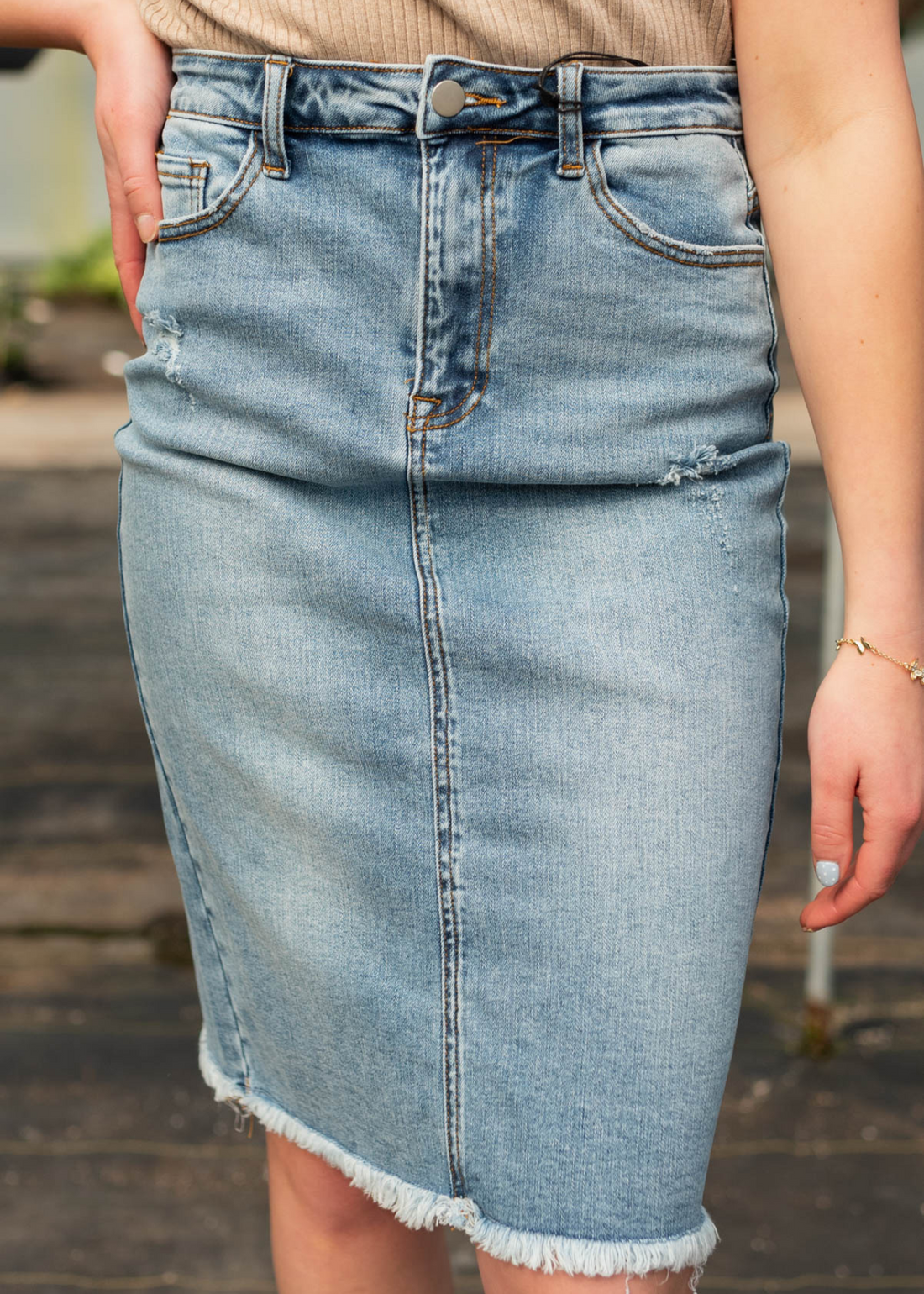 Sheridan Indigo Distressed Skirt