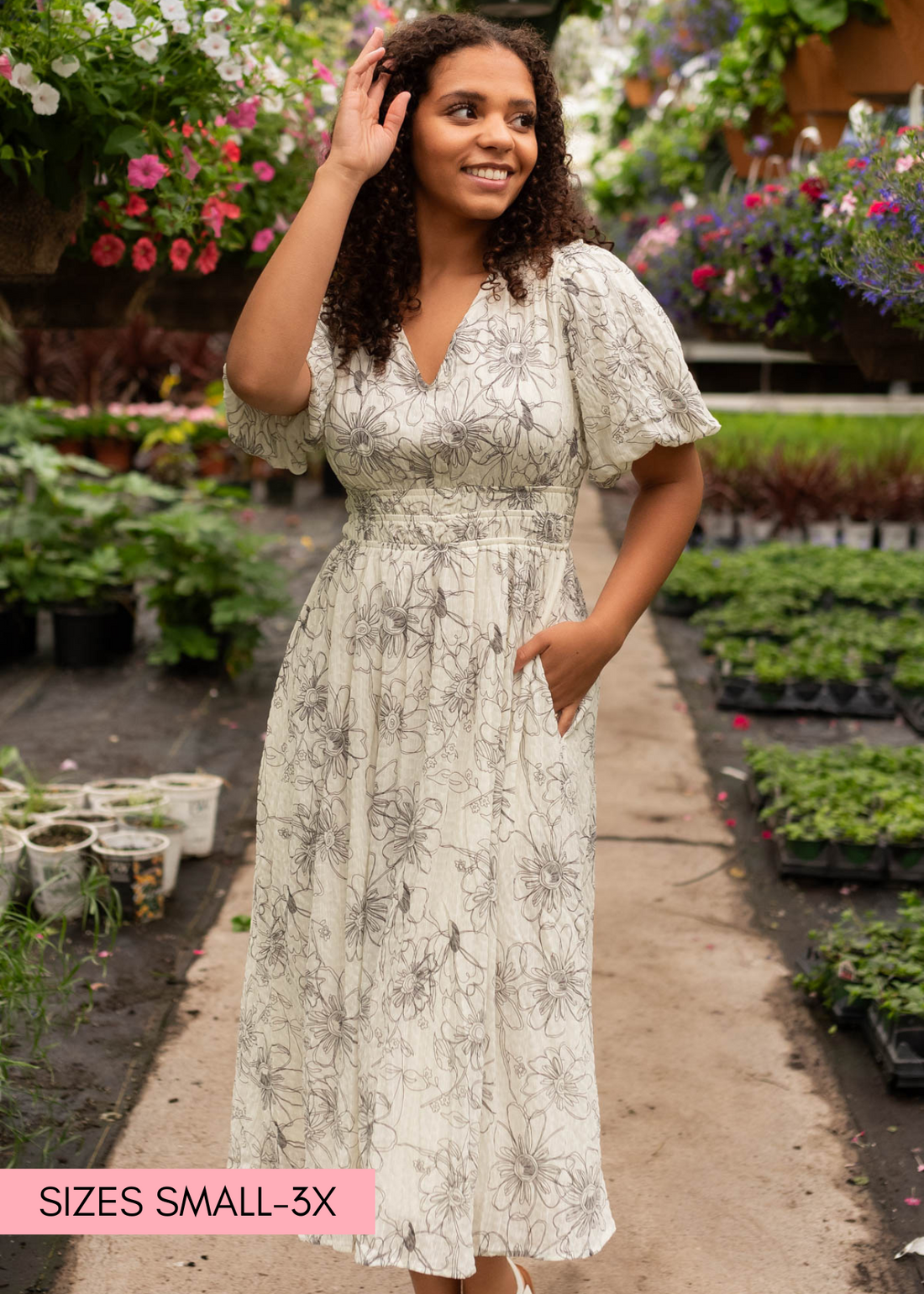 Kaysha Black Floral Midi Dress
