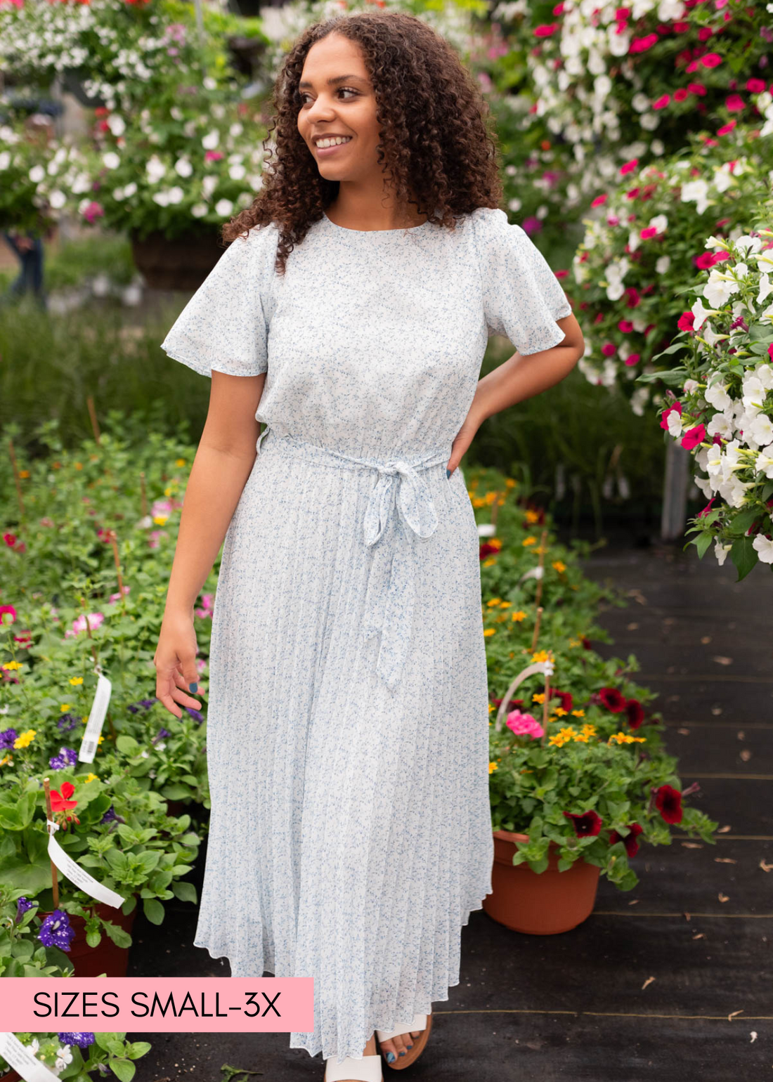 Lynda Ivory Blue Floral Pleated Dress
