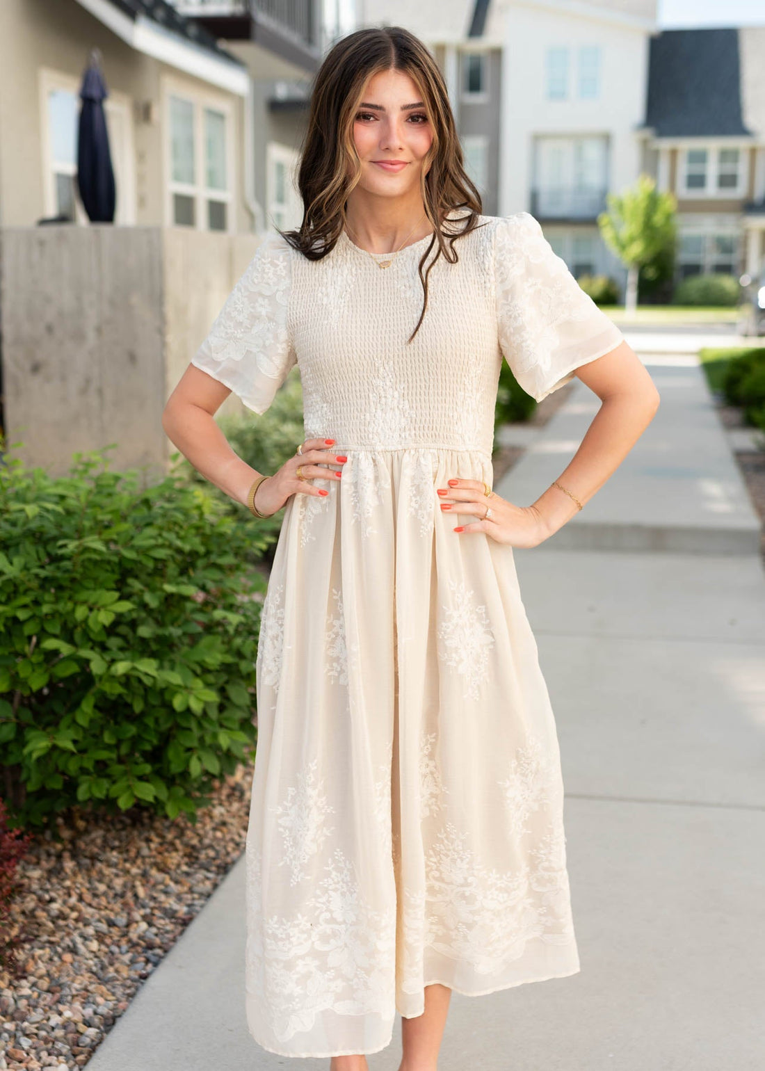 Cherish Champagne Embroidered Dress