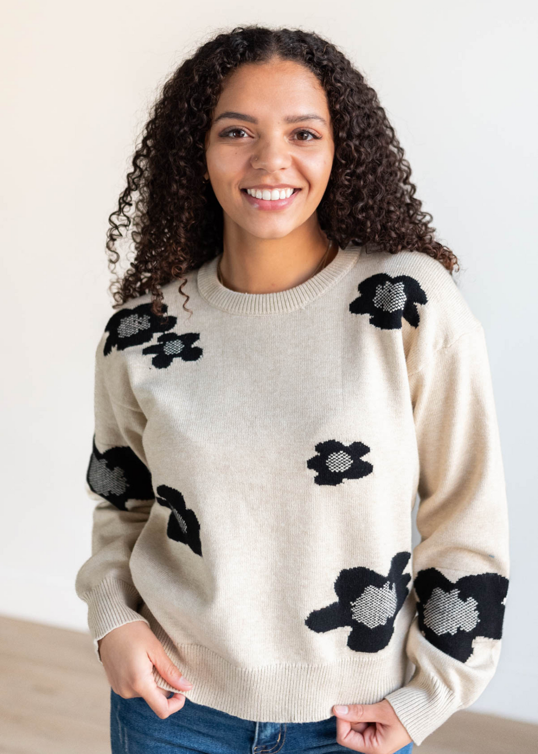 Charnelle Khaki Black Floral Sweater