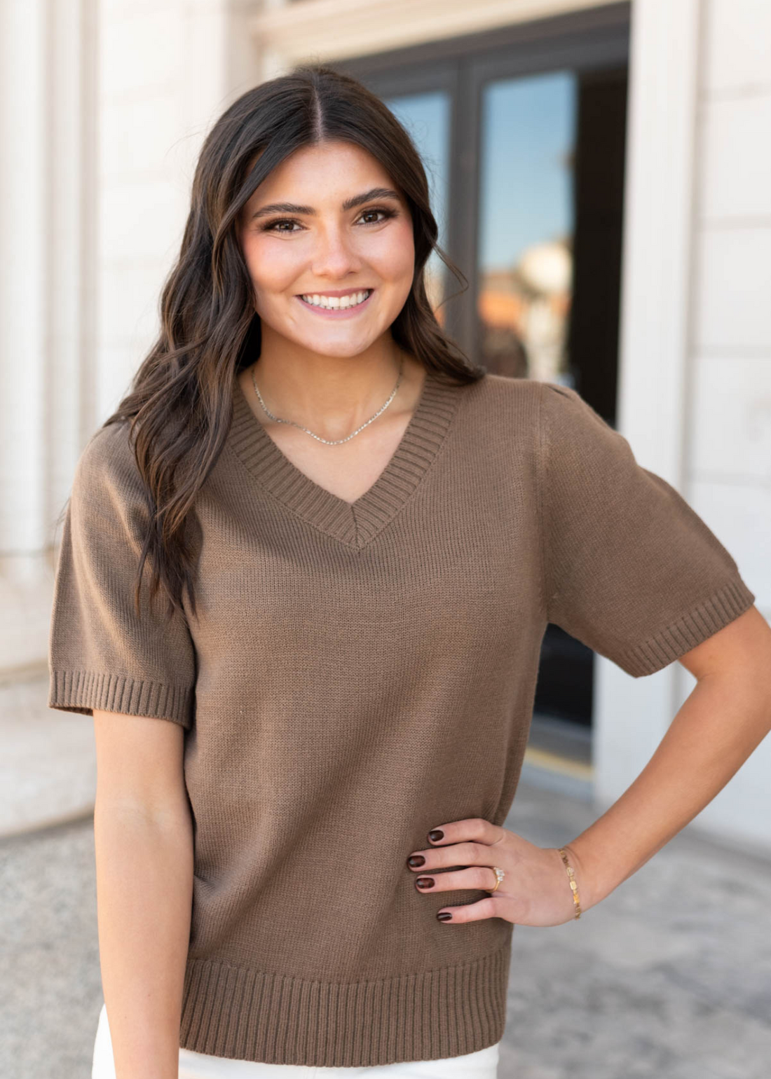 Chesnee Taupe Short Sleeve Sweater
