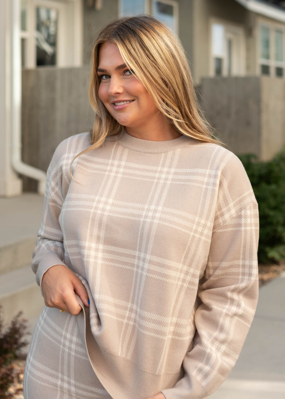 Ella Taupe Plaid Sweater