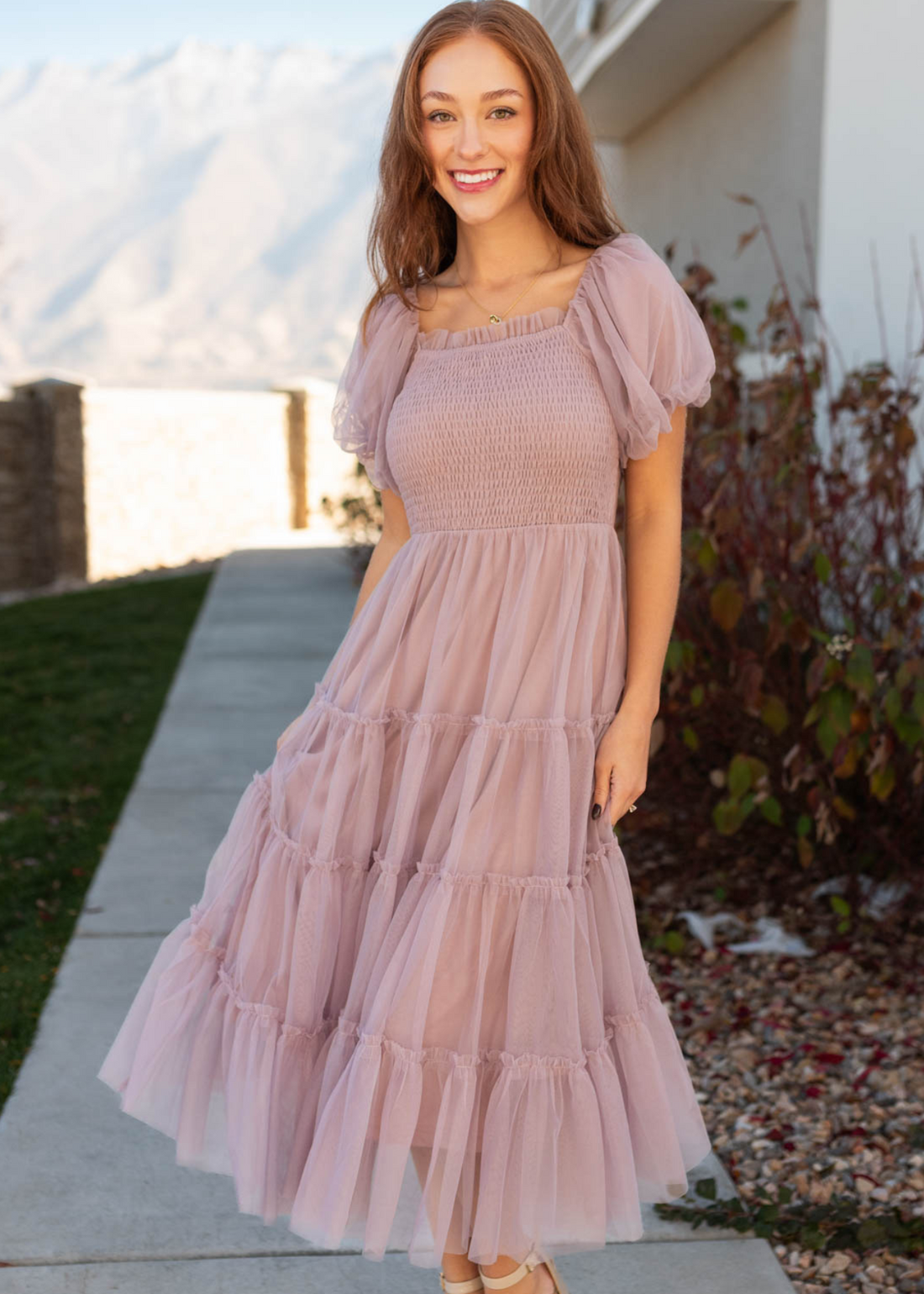 Elowyn Puff Sleeve Mesh Dress
