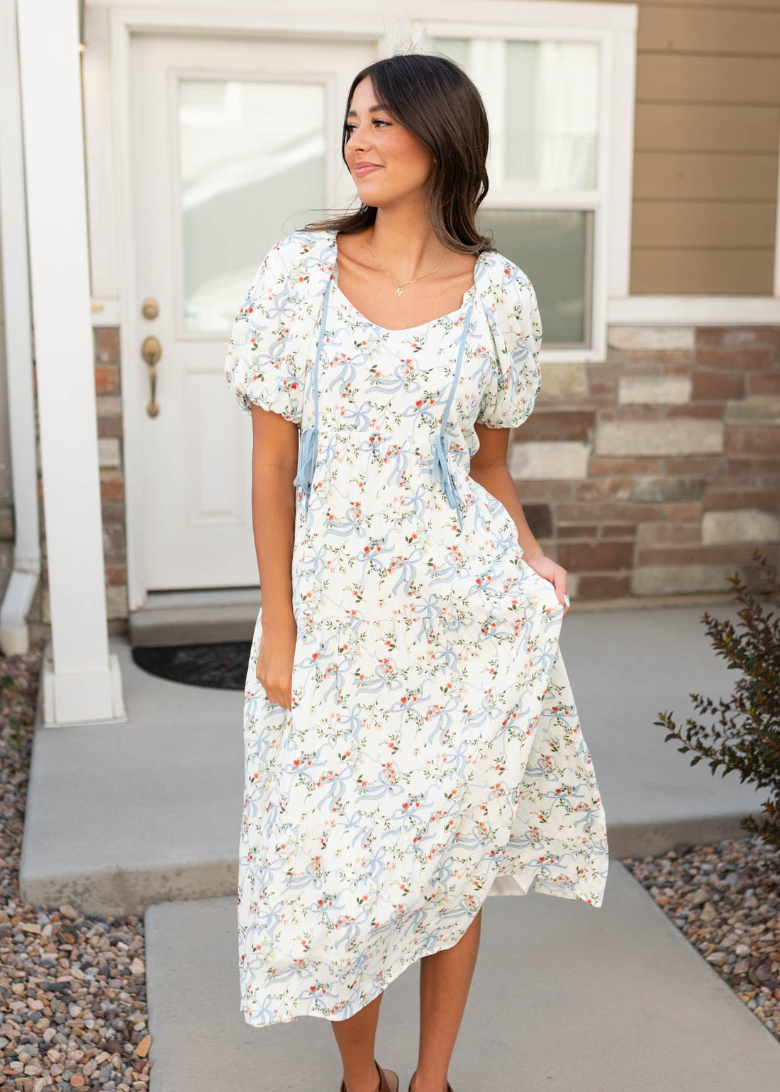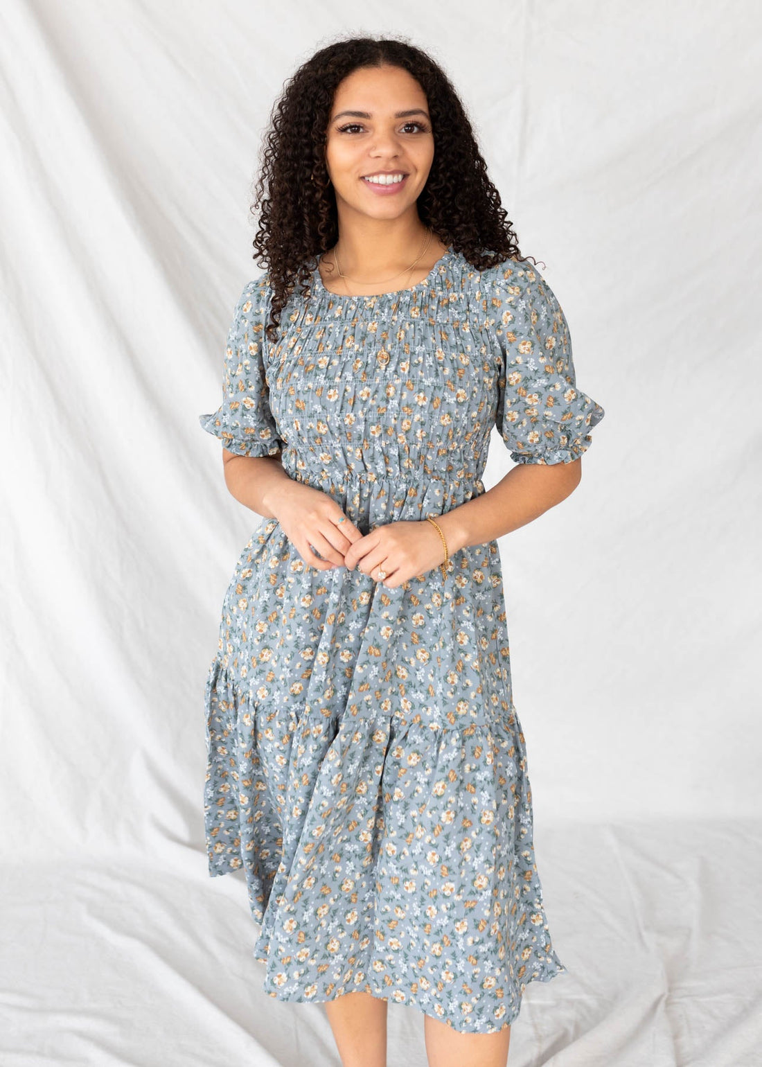 Elowyn Dusty Blue Floral Dress