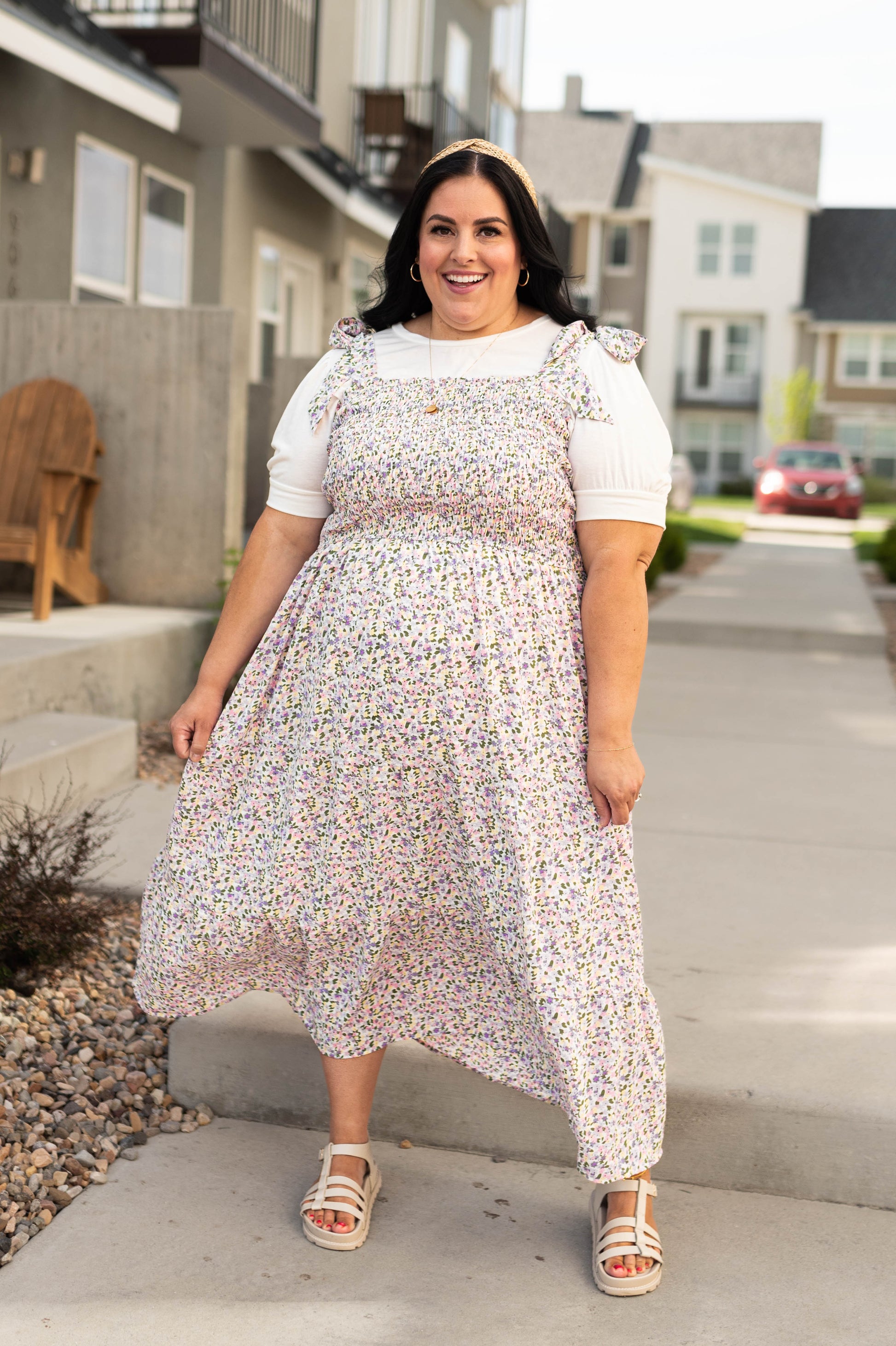 - Runs TTS with a smocked bodice & adjustable straps. Size down if in-between