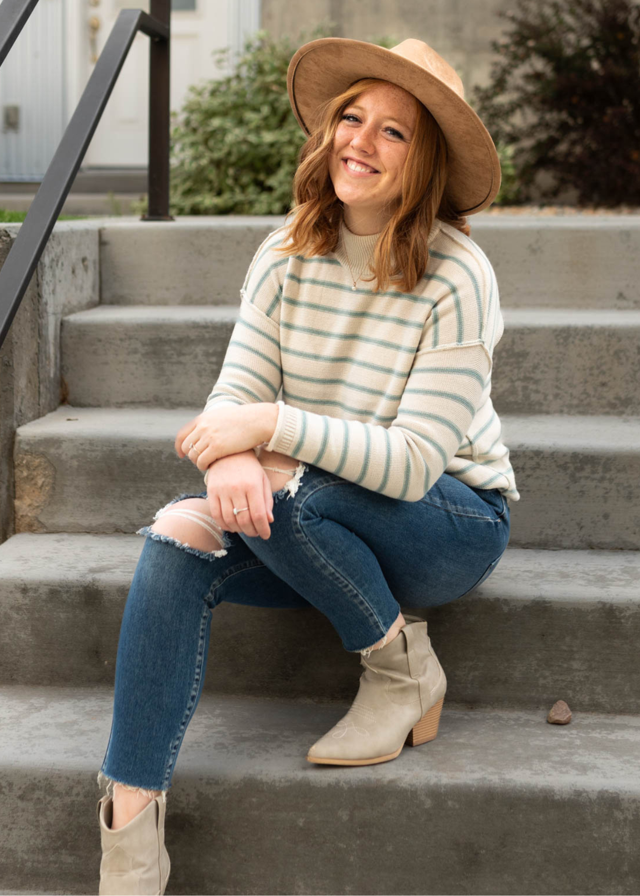 - Oatmeal base + sage stripe print