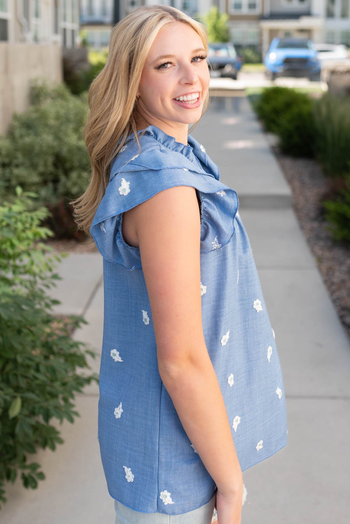 Camille Denim Blue Floral Top
