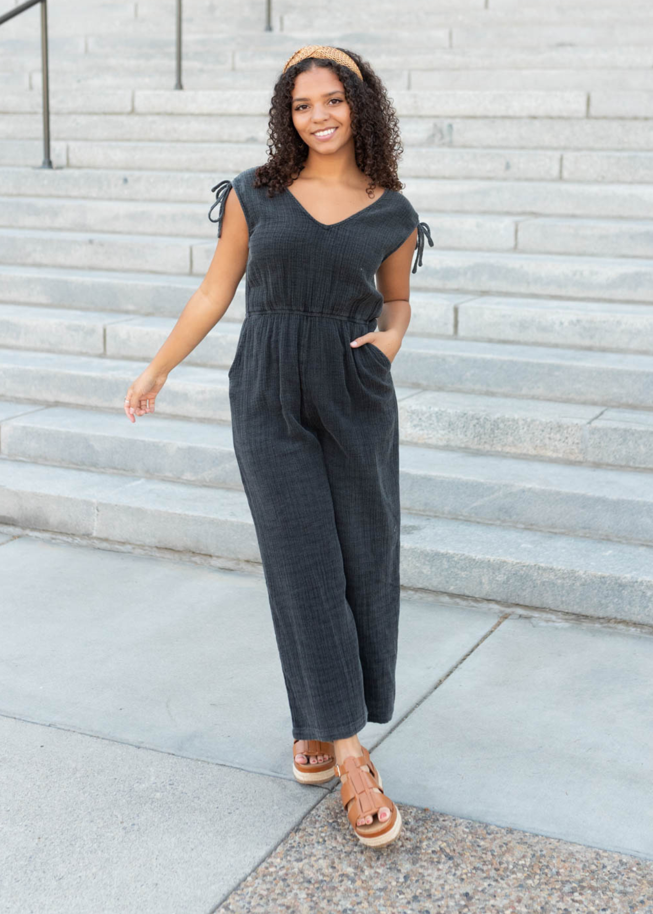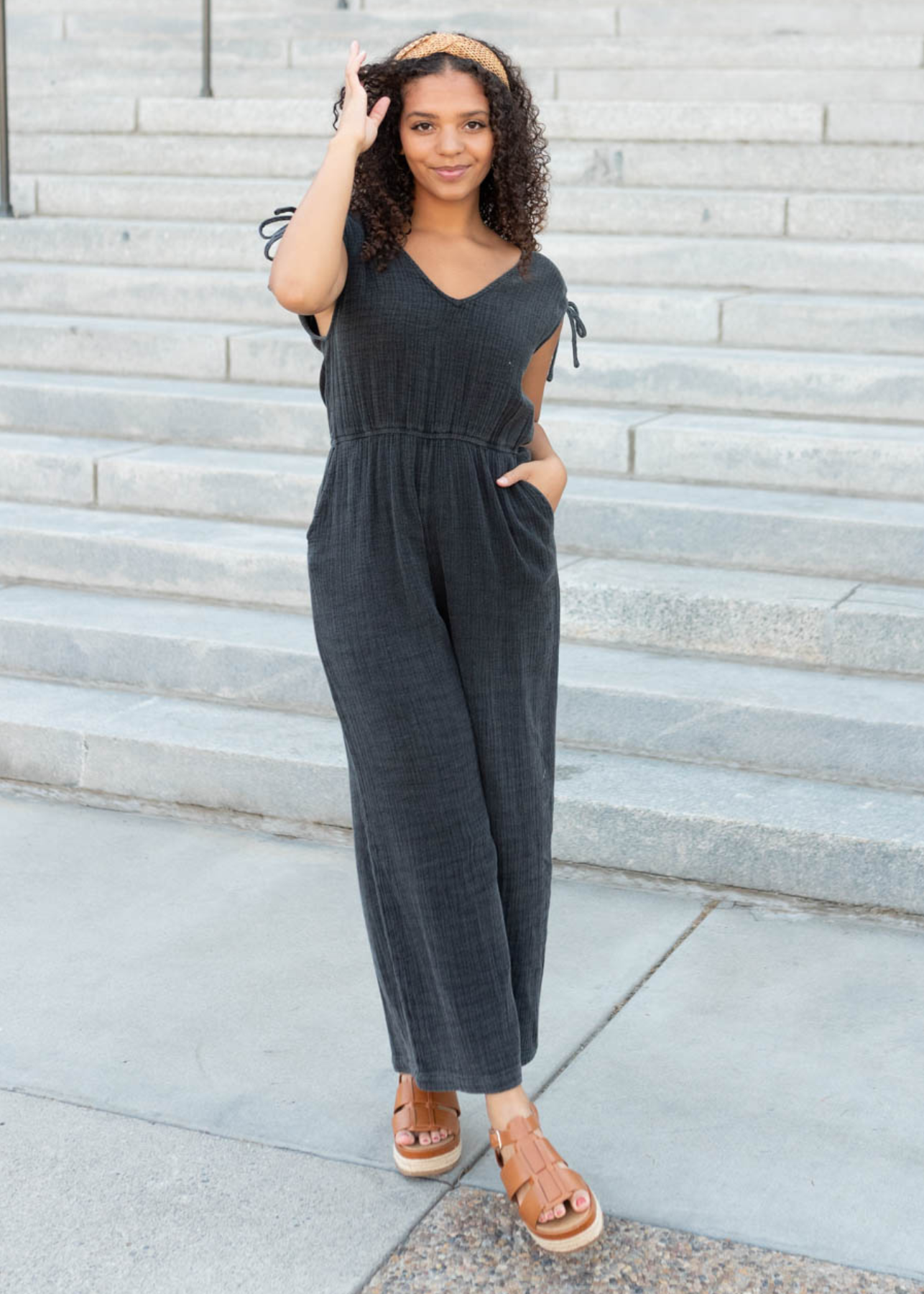 - Mineral wash gauzy fabric that's lightweight and breathable