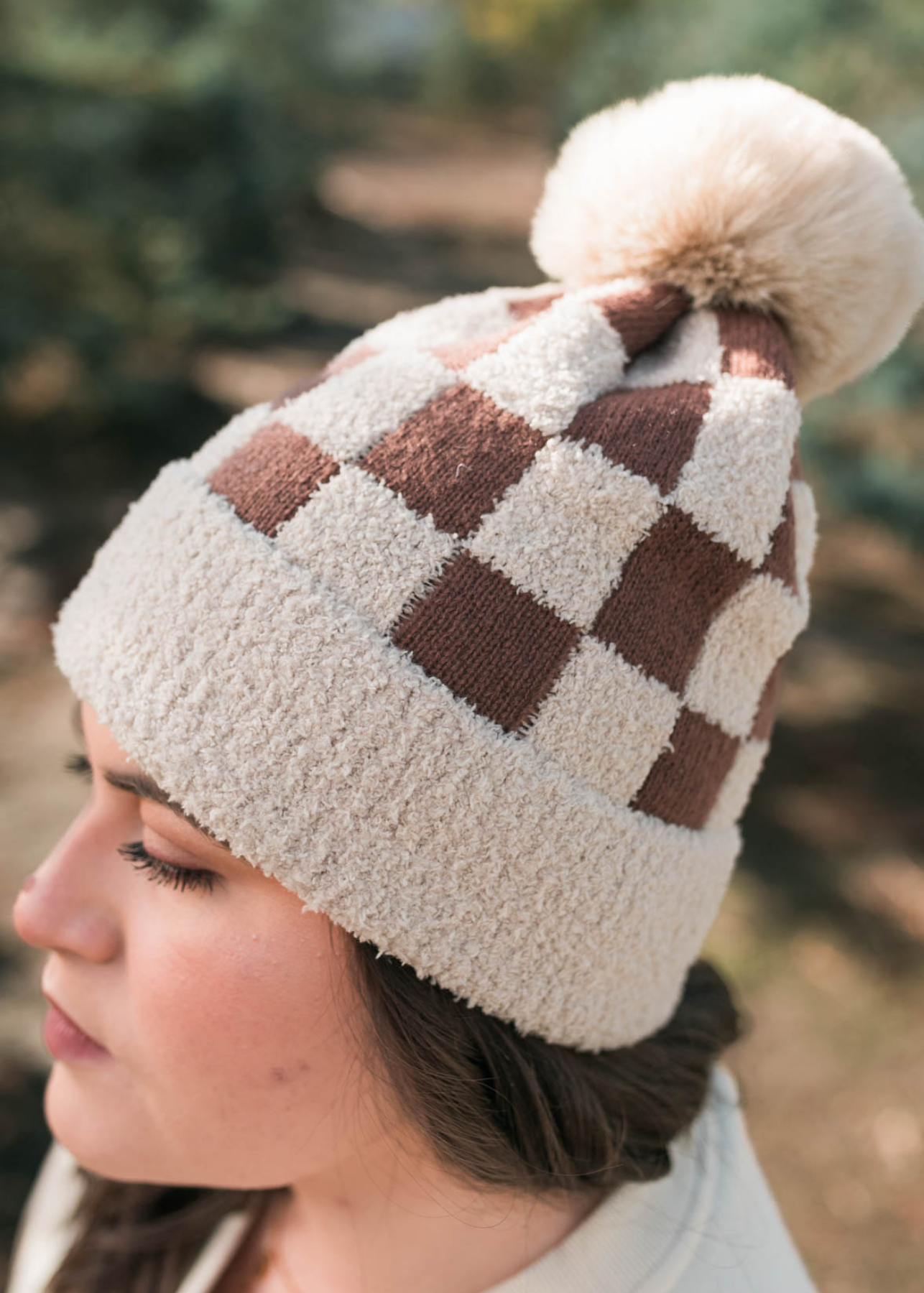 Jacklyn Taupe Checkered Beanie