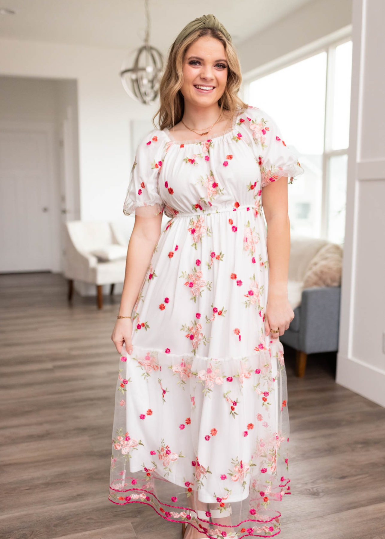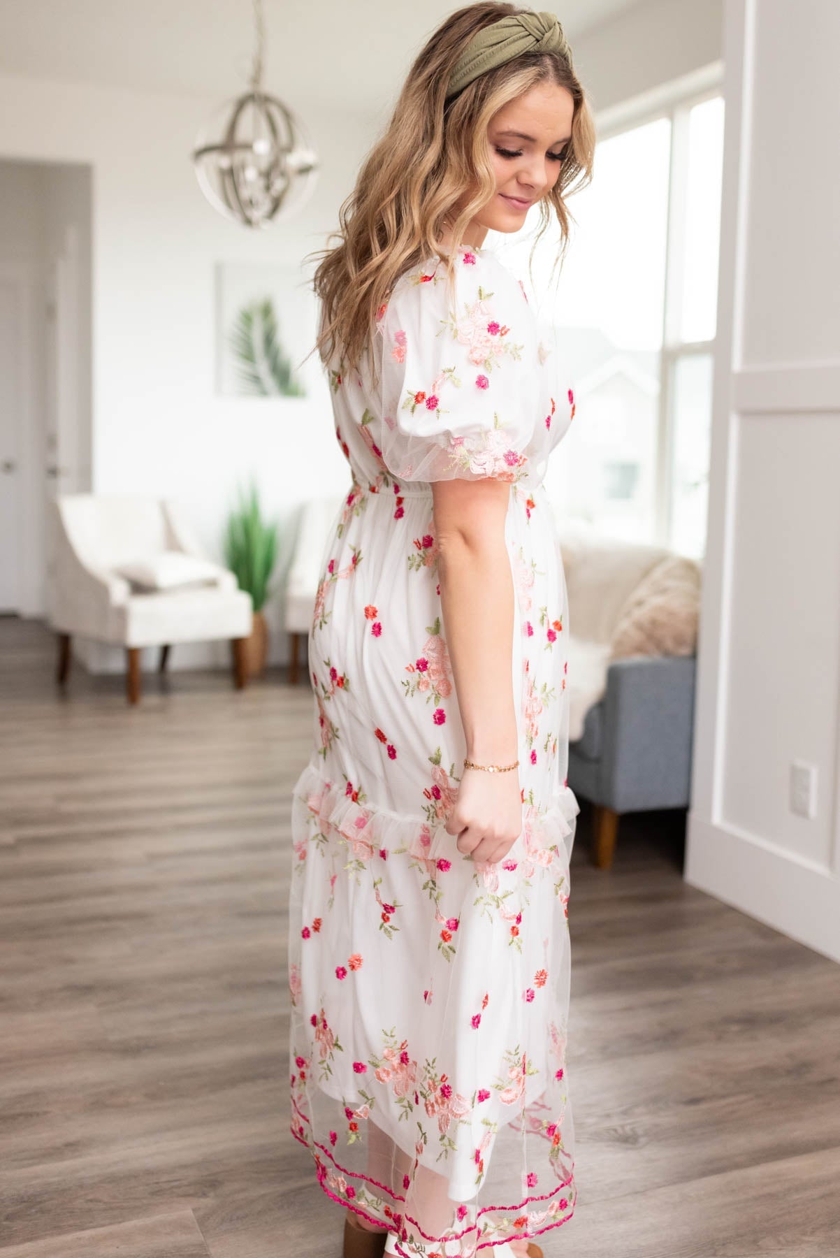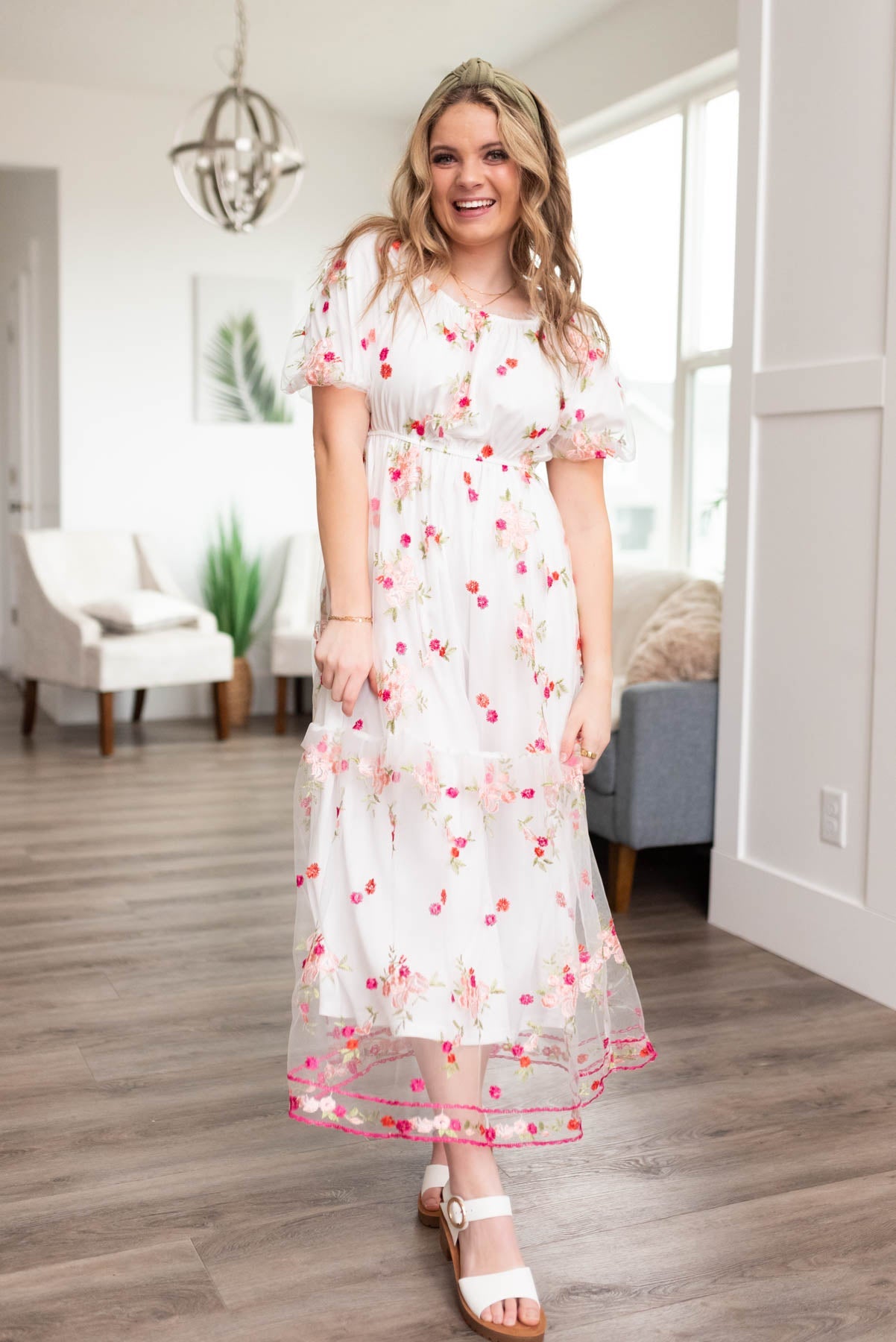 Elizabeth White Embroidered Floral Dress