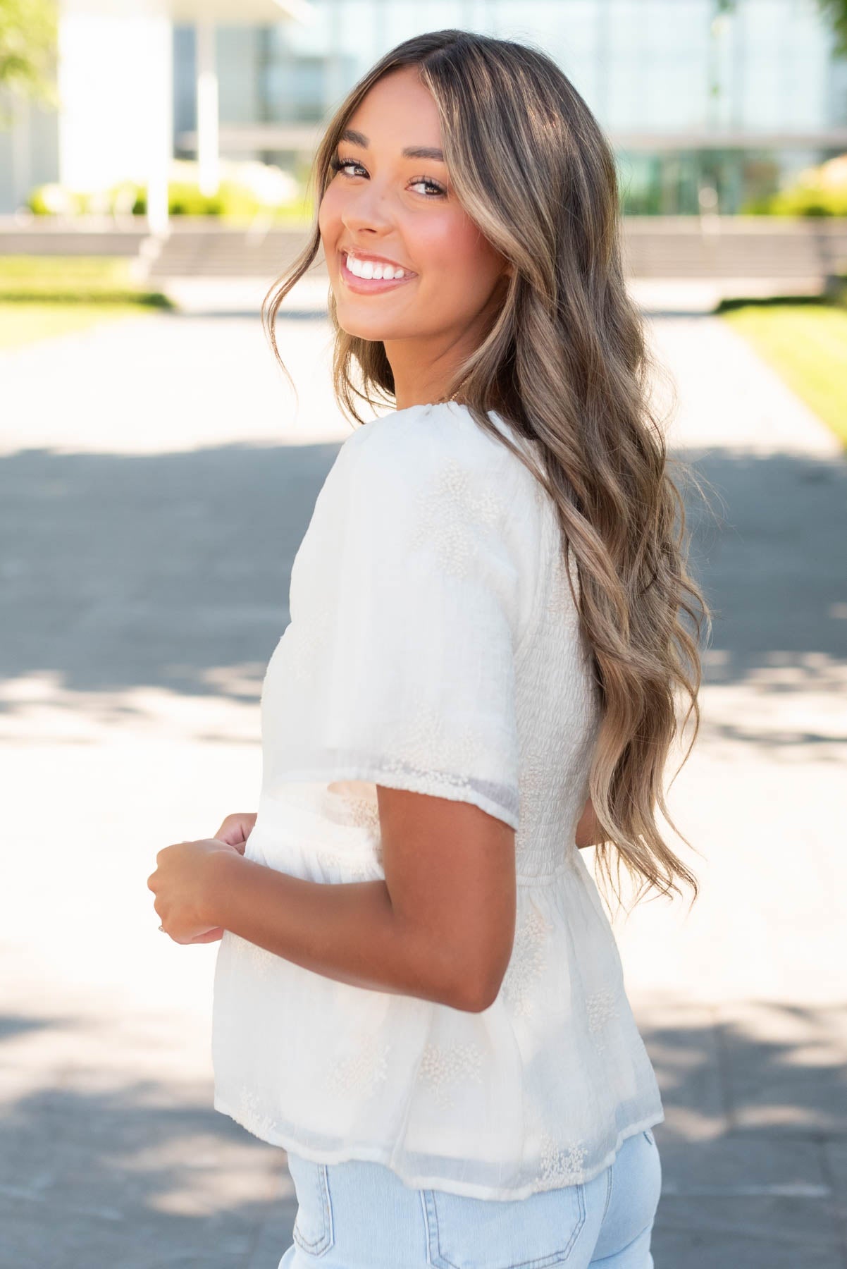 Ella Cream Floral Peplum Top