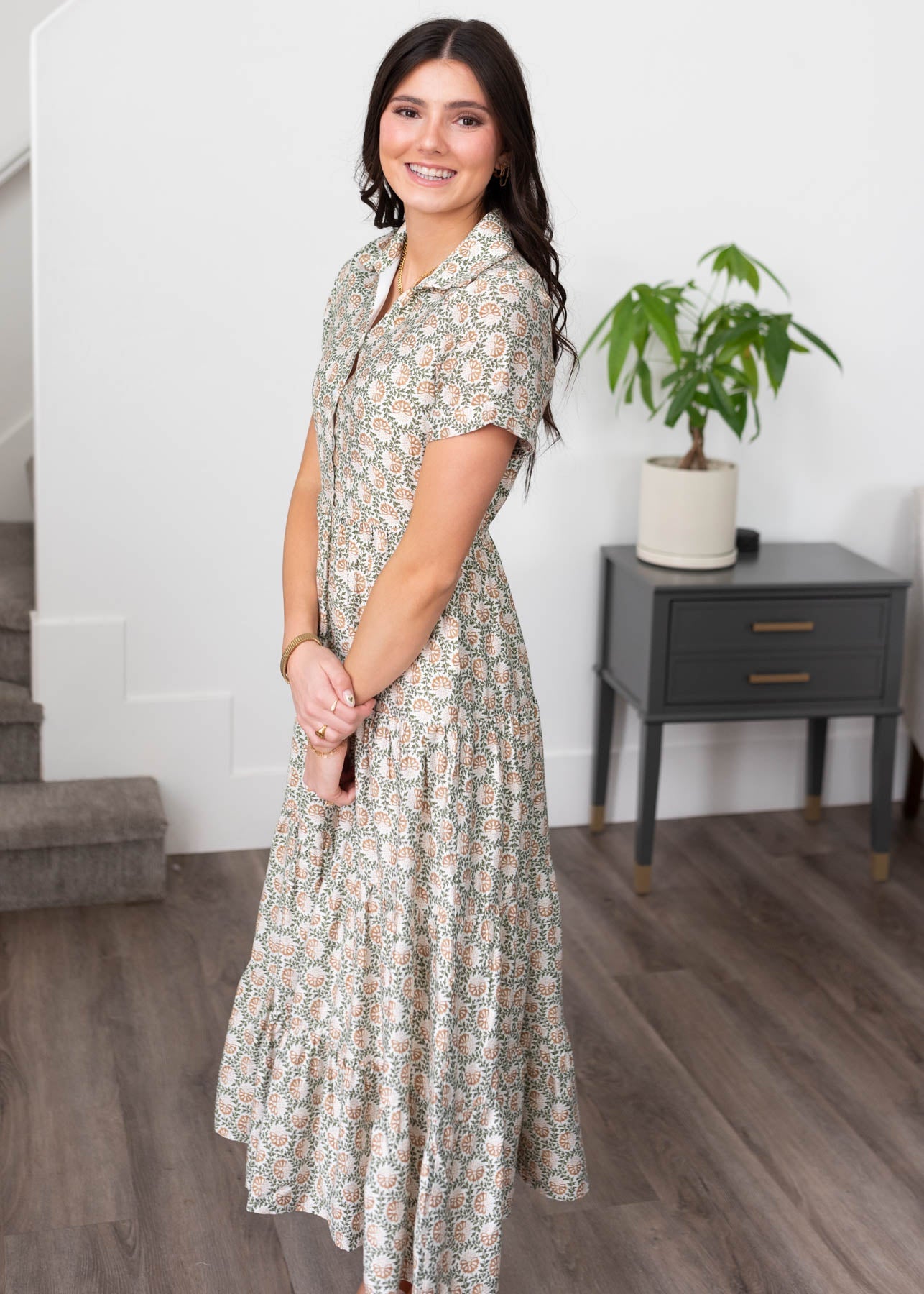 Lauretta Green Floral Collared Dress