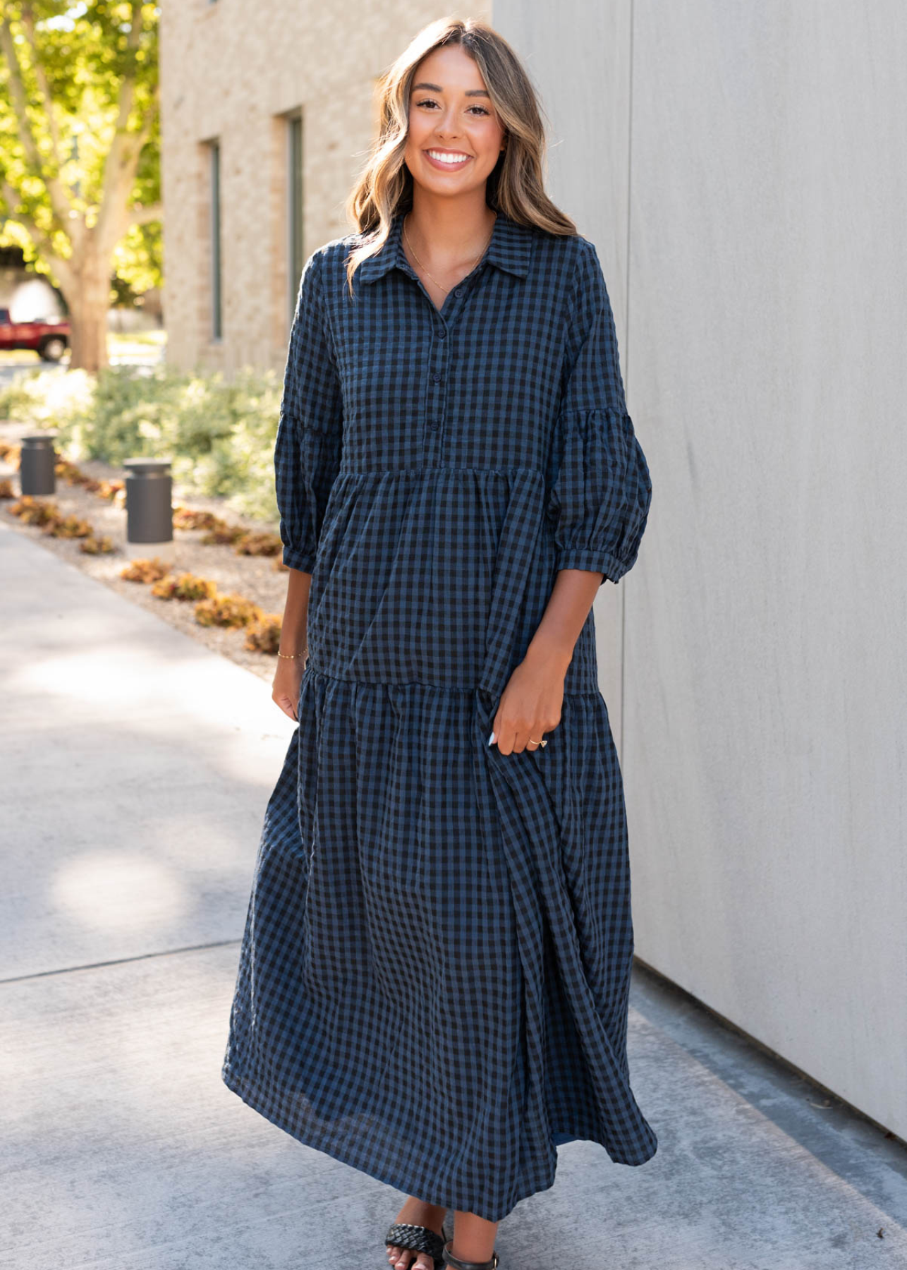 Layne Navy Black Gingham Dress