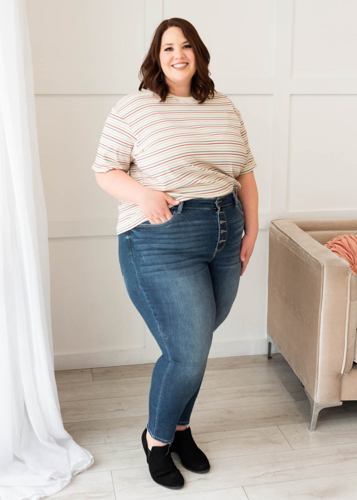 - Combination of magenta, sage, dusty blue, and blush stripes for a stylish, colorful look