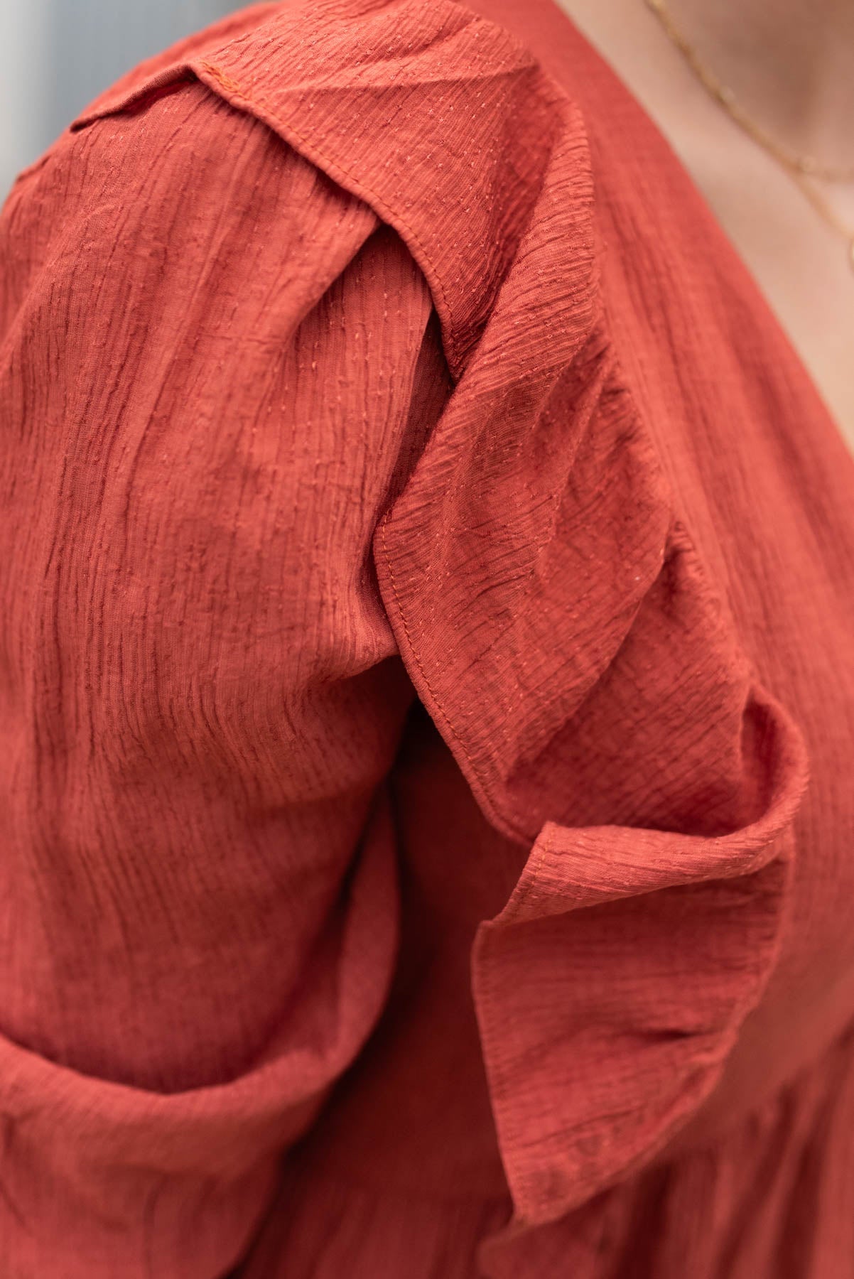 -Ruffles that run over the shoulders and on the front and back of bodice