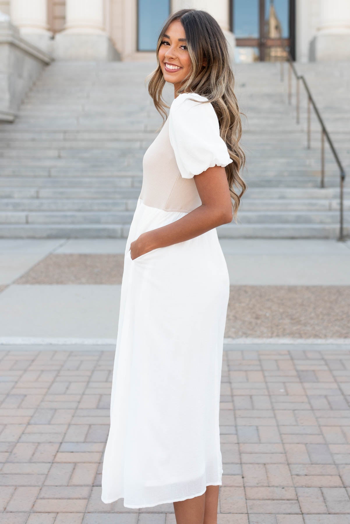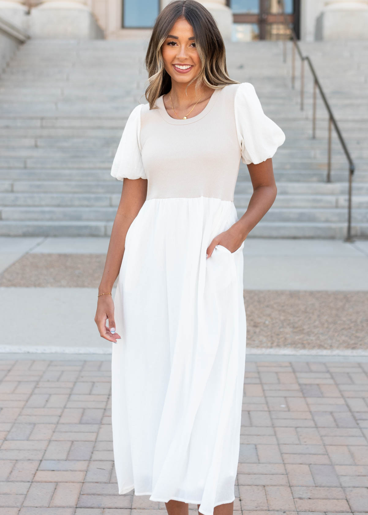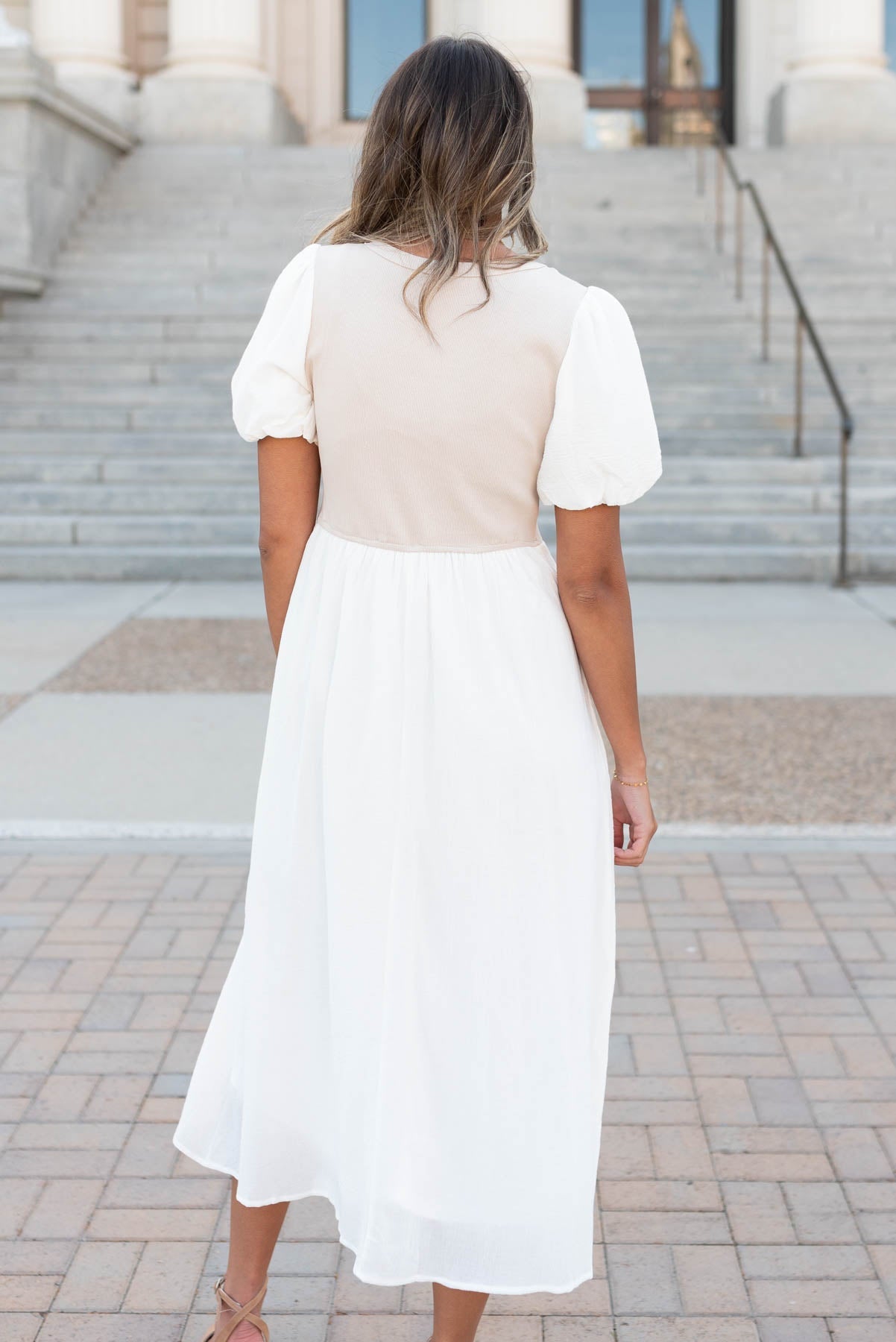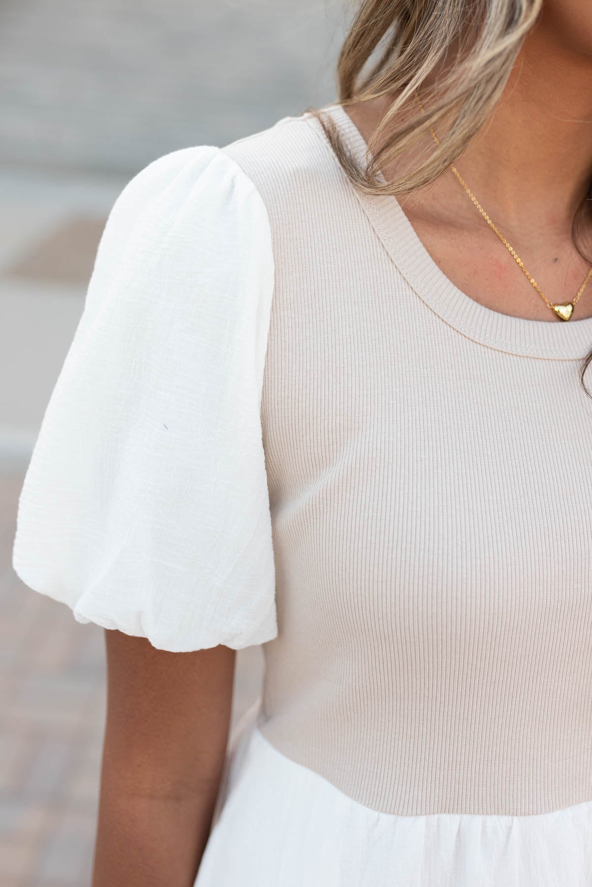 - Ribbed material in the bodice that's super stretchy and comfortable