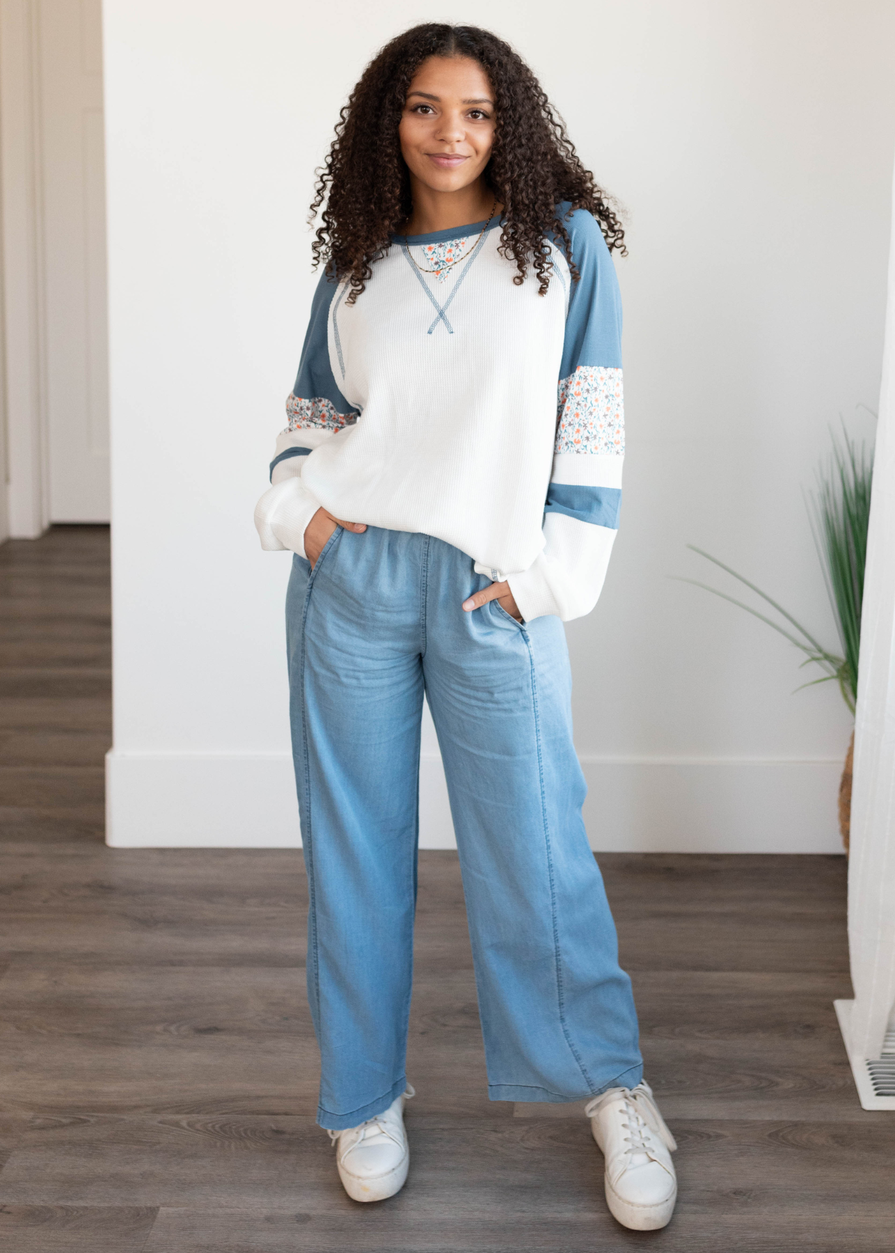 Nessa Blue Floral Patchwork Long Sleeve Top
