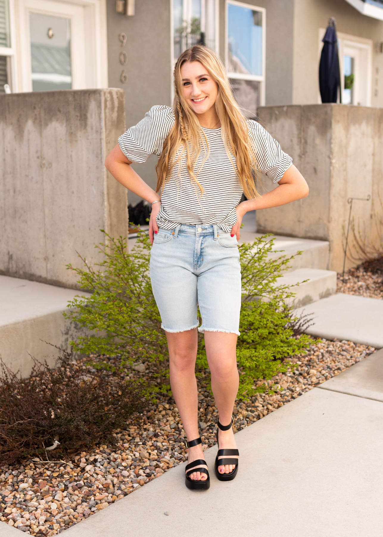 Sheryl Stripe Bubble Sleeve Top