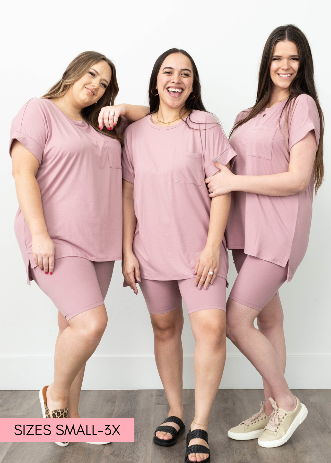 Say hello to the raddest set of all time: the Sophia Set. She's here to change your fashion game and ensure you stay comfortable all day long. The top fits like a dream- relaxed fit with the softest material. And the pants are event better! High-waisted biker short fit with ALL the stretch. Style this together for the ultimate trendy look, or wear the top with denim and the bottoms with a graphic tee! You can never go wrong with a matching set, and this one is dying to be in your wardrobe!