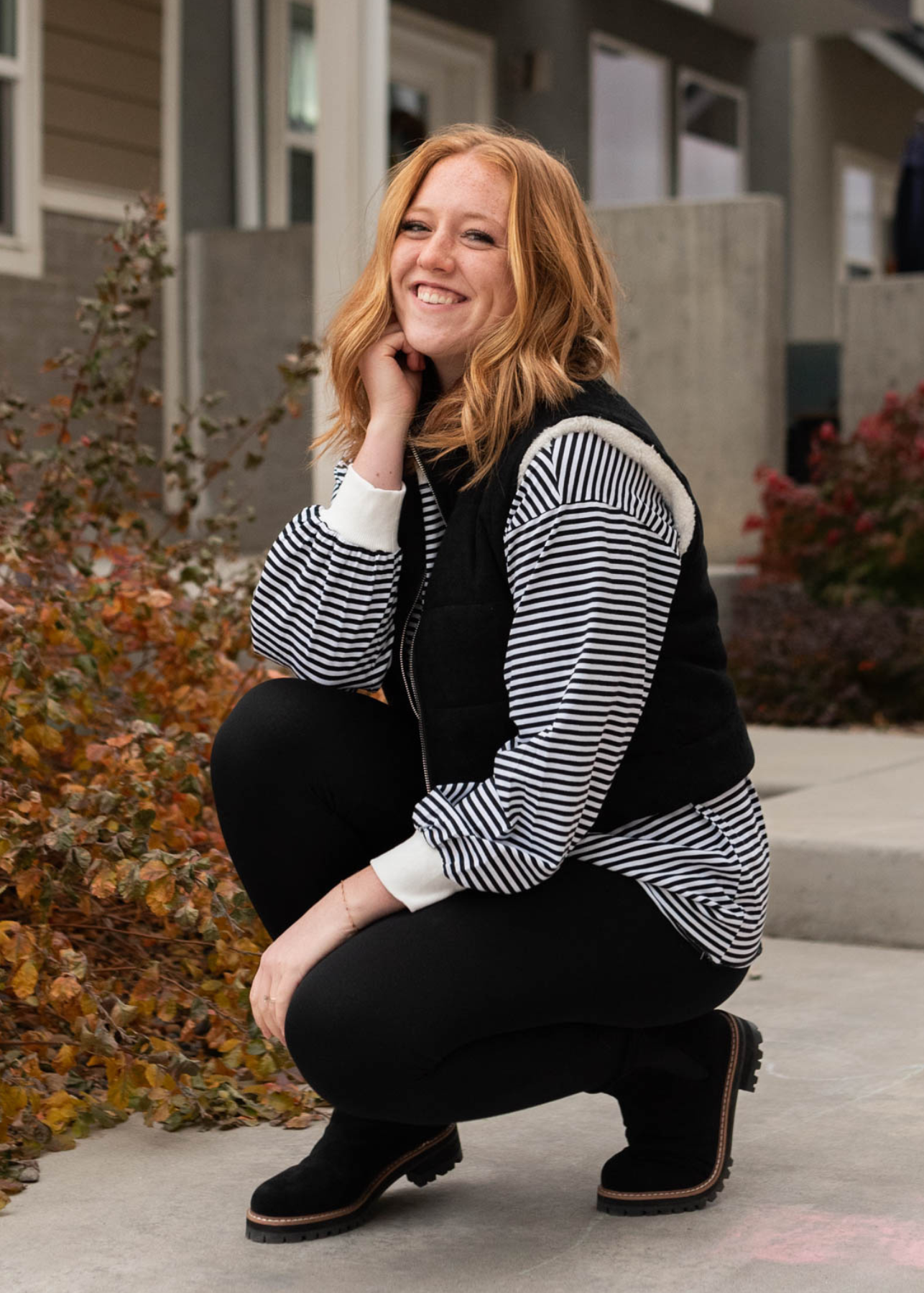 - Soft corduroy fabric + sherpa lining on the inside. So cozy warm!
