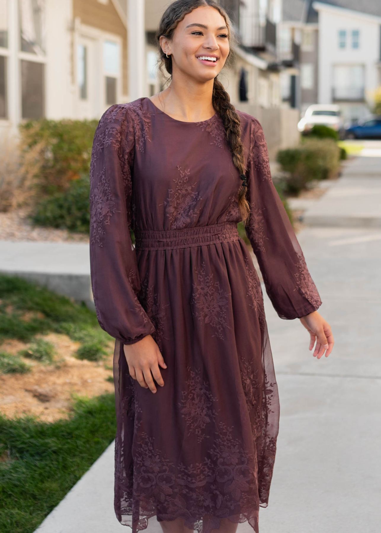 Tiana Dusty Plum Embroidred Chiffon Dress